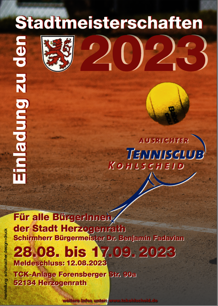 Anbei überreichen wir Euch die Ausschreibung für die diesjährigen Stadtmeisterschaften und bitten um rege Teilnahme. Ausschreibung und Anmeldung findet Ihr im Anhang.