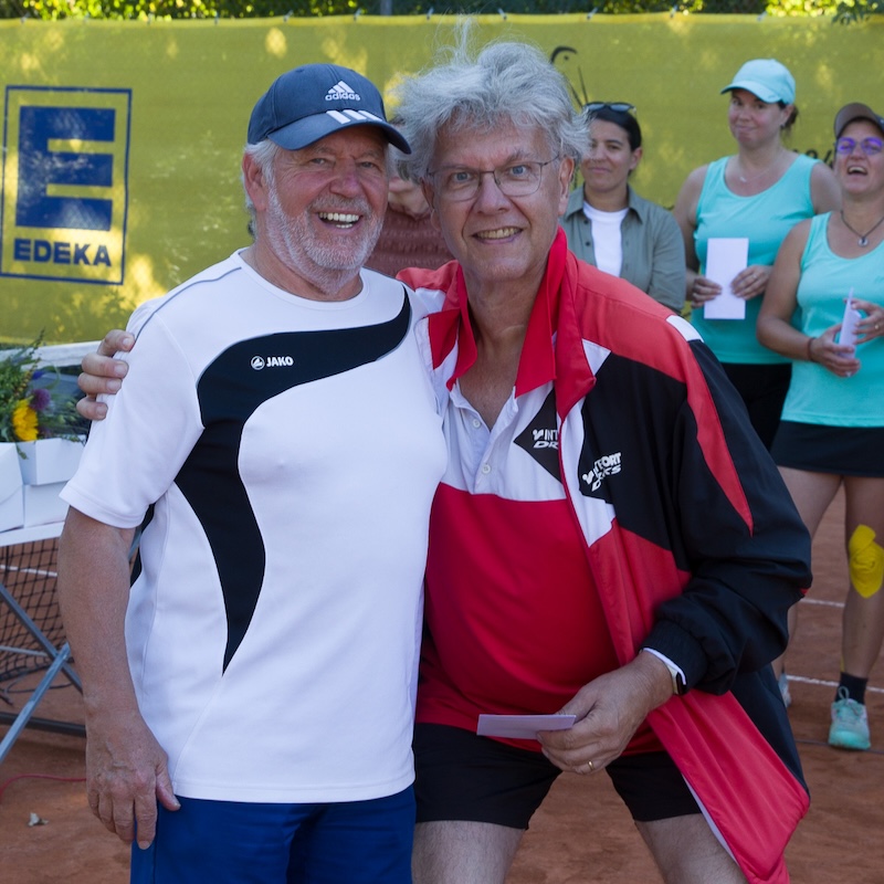 Das große Teilnehmerfeld von 80 Doppelpaarungen ist Beweis genug für die Attraktivität des Turniers für die Tennisfreundinnen und -freunde der Euregio. 136 Doppel- und Mixed-Matches in 11 Kategorien ab Altersklasse 30 aufwärts standen auf dem Plan. Die Turnierleitung unter Corinna Bornscheuer-Heschel und Ingo Heschel meisterte diesen organisatorischen Kraftakt mit Bravour, nicht zuletzt auch wegen der engagierten Unterstützung durch Carla und Dieter Schumacher, Margot Peter, Yvonne Esser, Dagmar Jenner und Rolf Bültmann. Dank der Flutlichtanlage auf 4 Plätzen konnten die Spiele bis in den Abend hinein ausgetragen werden und auch das Wetter zeigte sich die ganze Woche über von seiner besten Seite. Die Aktiven und zahlreichen Zuschauer sorgten mit Spielfreude, Kampfgeist, Fairness und anspornendem Applaus für eine begeisternde Tenniswoche mit sportlich fröhlicher Atmosphäre. Nicht zuletzt ließ das Angebot an leckeren portugiesischen Spezialitäten und erfrischenden Getränken von Clubhauswirt Fernando keine Wünsche an das leibliche Wohlbefinden offen und lud zum geselligen Verweilen auf der Terrasse ein.