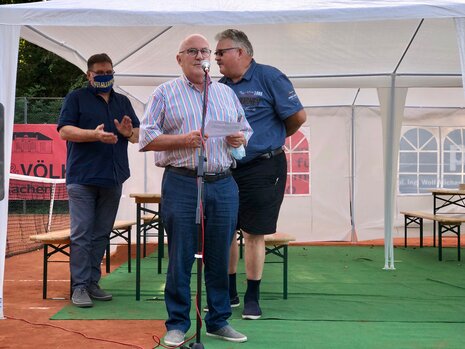 Auch Dr. Manfred Fleckenstein, stellvertr. Bürgermeister der Stadt Herzogenrath, und Manfred Borgs, Achim Beckers und Erich Pelzer vom Vorstand des Stadtsportverband Herzogenrath e.V. machten den TennisspielerInnen unter anderem am Finaltag ihre Aufwartung und zeigten sich von der Tatkraft des Vereins und der Turnierorganisation angetan, dieses Ereignis gerade jetzt unter der Corona-Schutzverordnung für Sportvereine so vorbildlich durchzuführen.