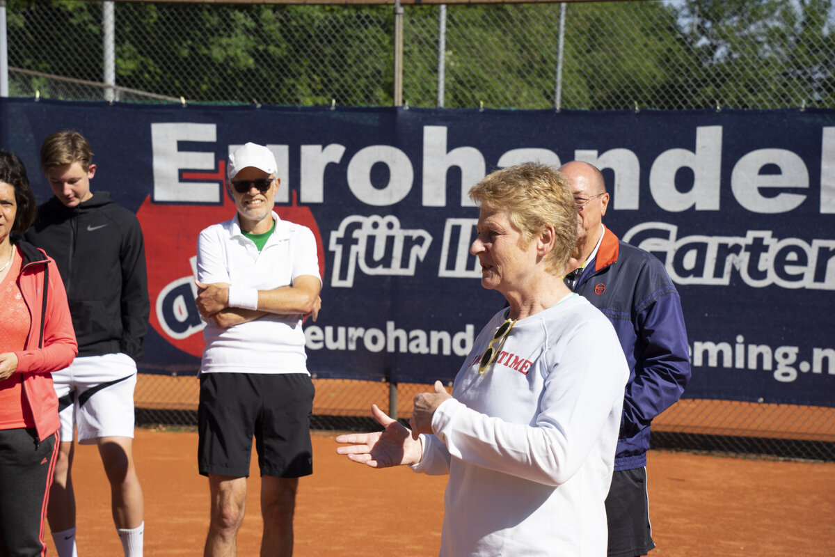 Super Pfingstturnier 2022 - 18 Damen und 18 Herren haben in 4 Runden gespielt. Jede Spielerin und jeder Spieler zog eine Nummer - daraus ergaben sich die Spielrunden mit wechselnden PartnerInnen und GegnerInnen in 3 Runden mit 7 Mixed und 1 Runde mit 6 Mixed. Das war ein toller Tennistag.