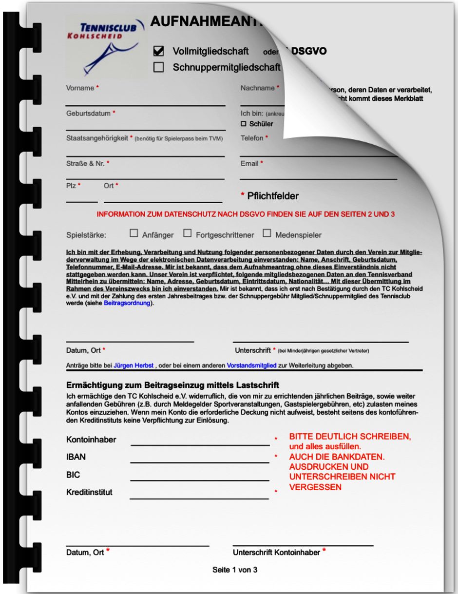 Bitte den Antrag an folgende Adresse und nicht an die Tennisanlage senden!