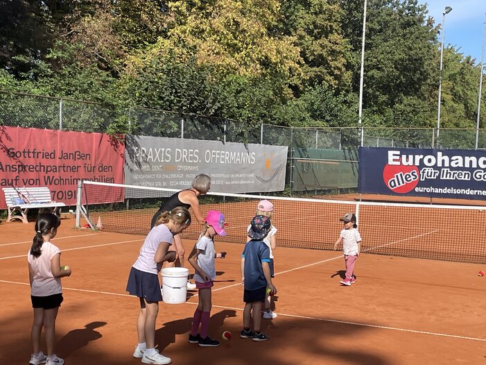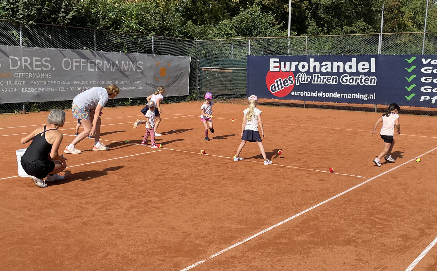 Absolut beliebt ist dabei das Angebot von Yvonne Esser, die mit viel Freude den kleinsten Kids Spaß am Tennissport vermittelt.